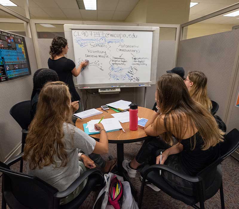 We are located in the FHG Library in Room 251. Enter at the circulation desk level and take a right. Please contact the Writing Center with questions. Email: writingcenter@wcupa.edu