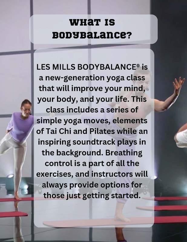 LES MILLS BODYBALANCE® is a new-generation yoga class that will improve your mind, your body, and your life. This class includes a series of simple yoga moves, elements of Tai Chi and Pilates while an inspiring soundtrack plays in the background. Breathing control is a part of all the exercises, and instructors will always provide options for those just getting started.