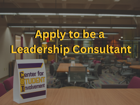 Leadership Consultants are undergraduate student leaders and are available to meet with students about ways to get involved. Leadership Consultant's hold open hours during the academic year in their office in the CSI on the 2nd floor of Sykes Student Union.
