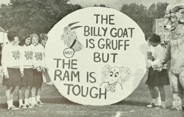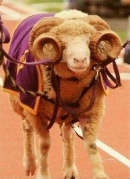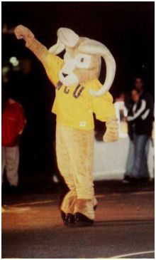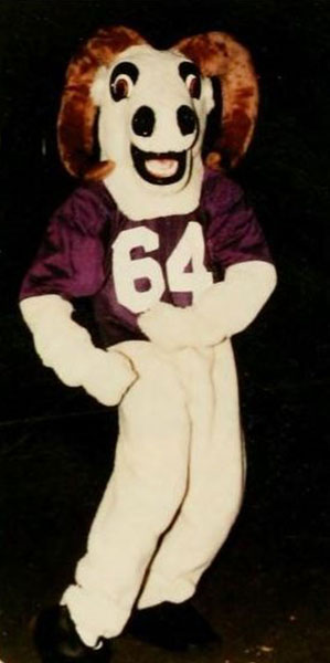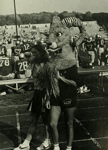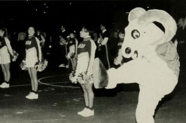 Our mascot, the Golden Ram, is the symbol of good luck and team spirit. The Ram, characterized by Curt Shearer, added enthusiasm and pep to our cheers. His gymnastic antics and undying spirit, often helped to bolster spirits and spur our teams to victory.