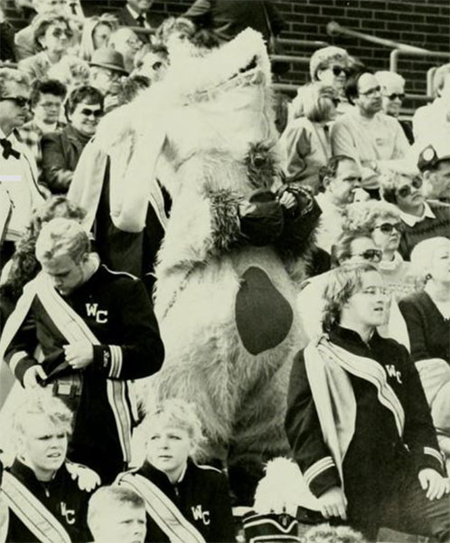 The Golden Ram, animated by Curt Shearer amused and spirited W. C. fans at all games. Displaying his gymnastic talents, the Ram executes a somersault as the team racks up another score. The symbol of luck and team spirit, our mascot is an integral part of all athletic events.