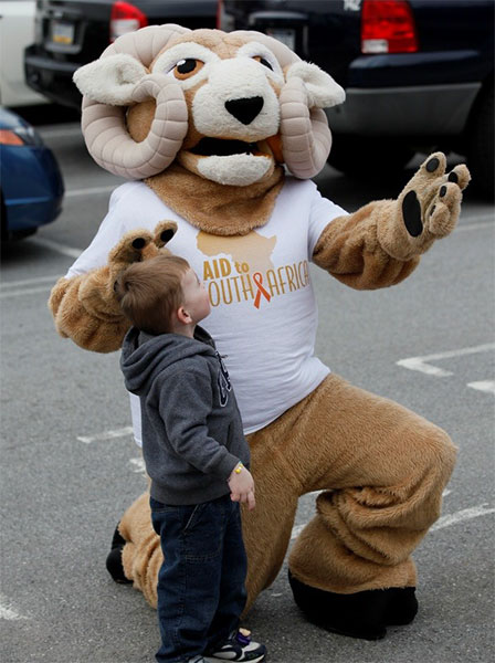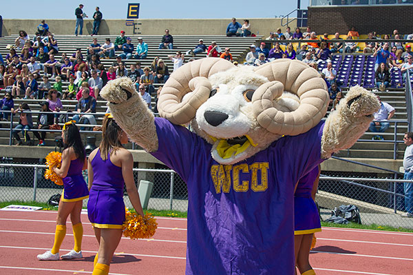 West Chester University's very own mascot, the golden ram, revs up some school spirit