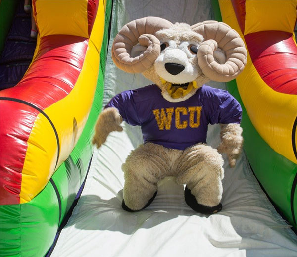 WCU's mascot, Rammy gets ready to rock the stands at a sports game. Go Rams!