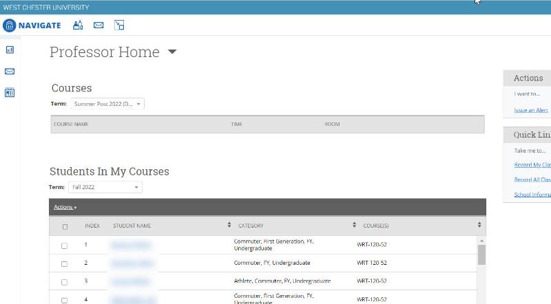 My Courses will default to current semester, use the down arrow to change semesters.