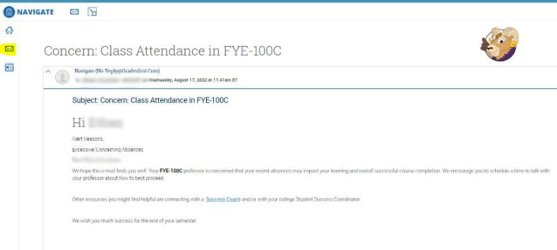 The student will receive an email reference to your alert.