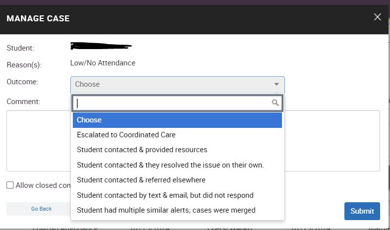 To close multiple cases at once with the same close reason, follow the steps above to get to your list of student cases, using the filters.