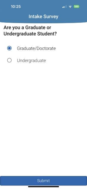 The Navigate Intake Survey is designed to solicit information from students regarding what their goals and expectations are for their time at WCU and to help us target where students would benefit from additional resources. The intake survey will be launched each semester to any student who downloads the EAB Navigate mobile app from the Google Play or Apple App store.