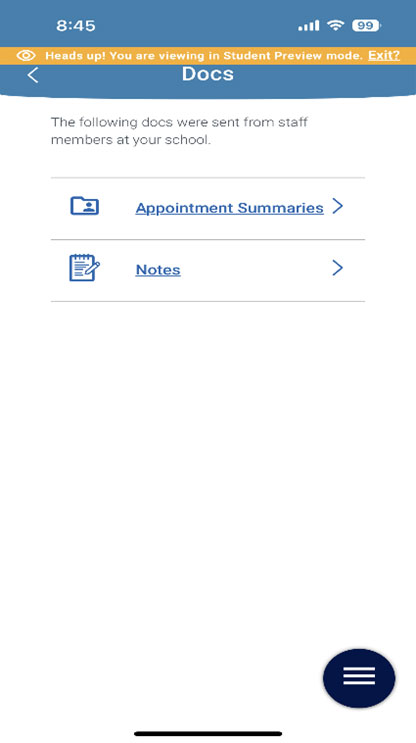 - Students can view the note in their MyDocs on the mobile app or the Reports Tab from a computer.