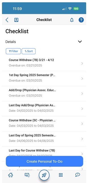 See important tasks and check them off as you complete them. The Checklist items can be created by staff or can be a personal to-do you assigned yourself. Update your checklists regularly to stay on track.