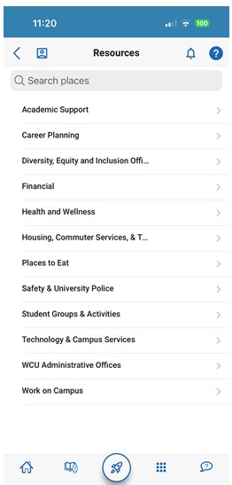 See a list of important services and locations on campus. The People tab shows a list of your assigned staff, e.g., advisors and instructors. Click the heart icon to favorite a resource. You can find your favorites in Settings > Favorites.