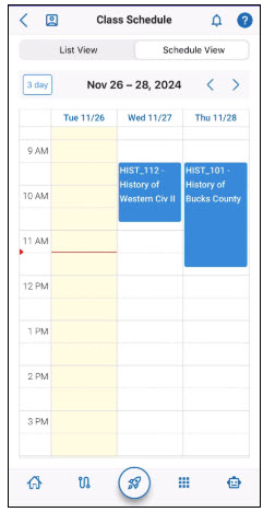 Your class schedule will appear on your homepage. You can see your course schedule in a list or calendar view, or get additional details such as meeting time, location, or instructor.