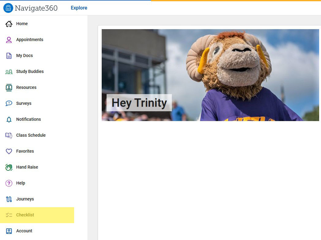 When a student opens the checklist page, the to-dos/reminders appear. Students find information on mandatory items to complete today and in the near future, as well as optional items to complete.