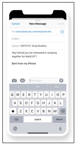 After choosing the classmates they would like to start a study group with, the student's native email app opens. If the student has more than one email app on their phone, they are asked to choose which email app to use.