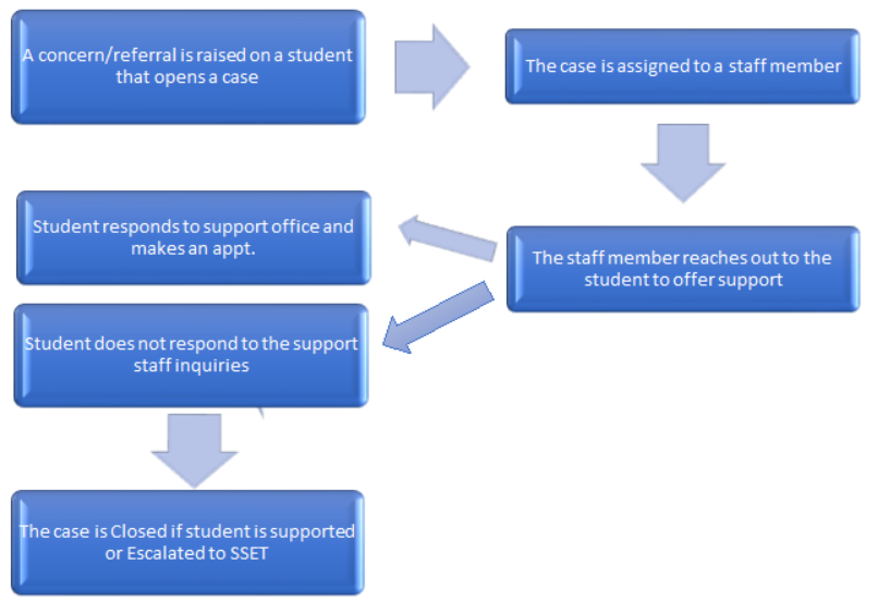 If concerns or referrals are raised on students who already have an ongoing relationship with a support office (Athletes, Office of Educational Assitance, D-CAP, Compass, AMP) their dedicated support office will be the primary office to manage their case.