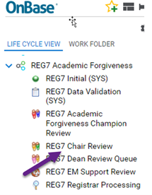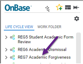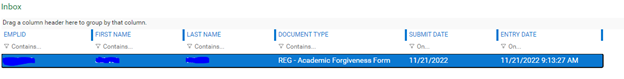 5. Click on the line with the REG – Academic Forgiveness Form that you would like to review.