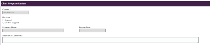 Please note: A review decision will be required for each course up to 3 courses. You will need to indicate Support or Do Not Support for each course.