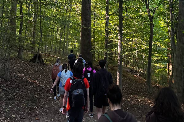 In COM 397: Social Support, Technology, and Loneliness, Assistant Professor Stephen DiDomenico focuses students' attention on the ways technology can both extend and hinder the experience of social connection in society. Walking around the GNA offered the class a chance to collectively experience how intentionally "disconnecting" from their different communication devices can help them savor more of the beauty of the natural world.