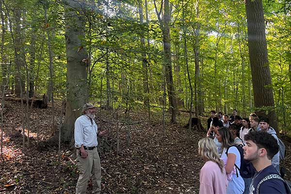 In September, two Communication Studies faculty, Dr. Megan Schraedley and Dr. Stephen DiDomenico, took their classes on field trips to the Gordon Natural Area (GNA) – a 126-acre biodiverse area of WCU’s southeastern campus. Both Dr. Schraedley and Dr. DiDomenico teach special topics courses offering upper-division students in the Department of Communication and Media a chance to study more advanced, contemporary communication challenges and contexts.