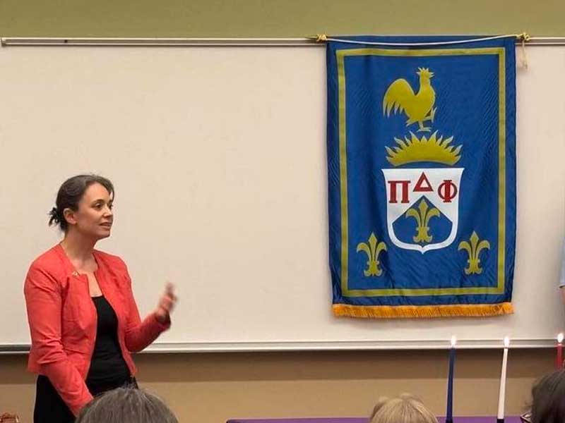 On April 3rd, 2025, the Xi Omega Chapter of Pi Delta Phi inducted 12 outstanding students and honorary members. Congratulations to them all! On that day, our Chapter was also honored by the visit of the French Consul of Philadelphia, Madame Marine Fraval-Vennel, and by the performance of composer, performer, and WCU professor Dr. Mark Rimple.