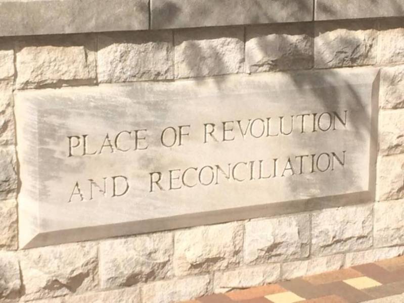 From Kelly Ingram Park in Birmingham AL. Place where Bull Connor released firehoses and dogs on the protestors. Many were children. It is across the street from the 16th St Baptist Church where the four little girls were killed and a fifth badly injured. Photo Credit: D. Johnson October 2017.
