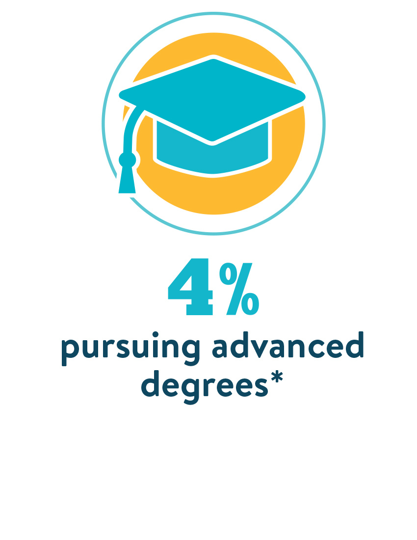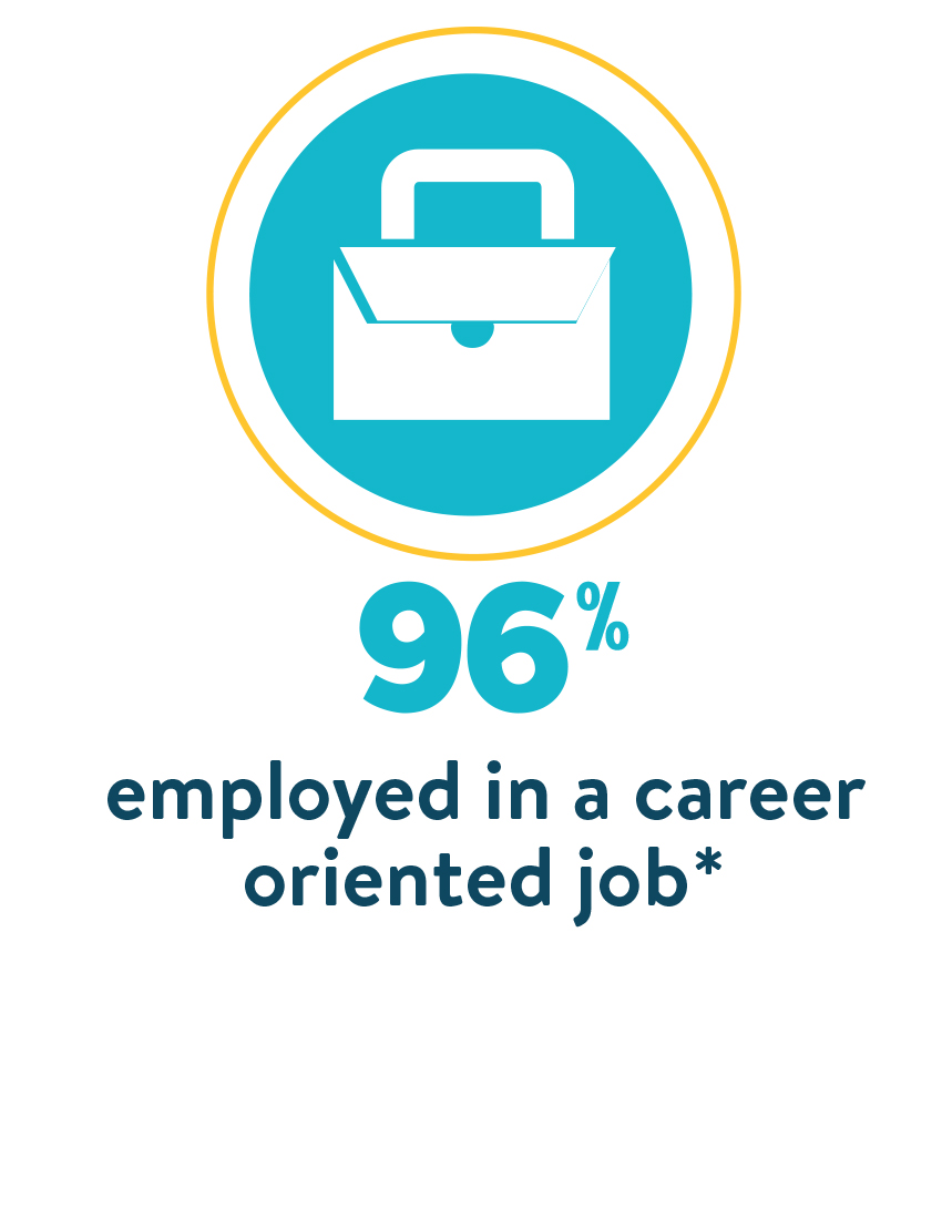 Our students come from all walks of life and a variety of backgrounds. We're a mix of seasoned, advanced professionals and traditional students who have recently started their careers. We survey all of our new students and recent graduates. The statistics provided above reflect the latest information from our 2023-2024 surveys of our new students and our new alumni.