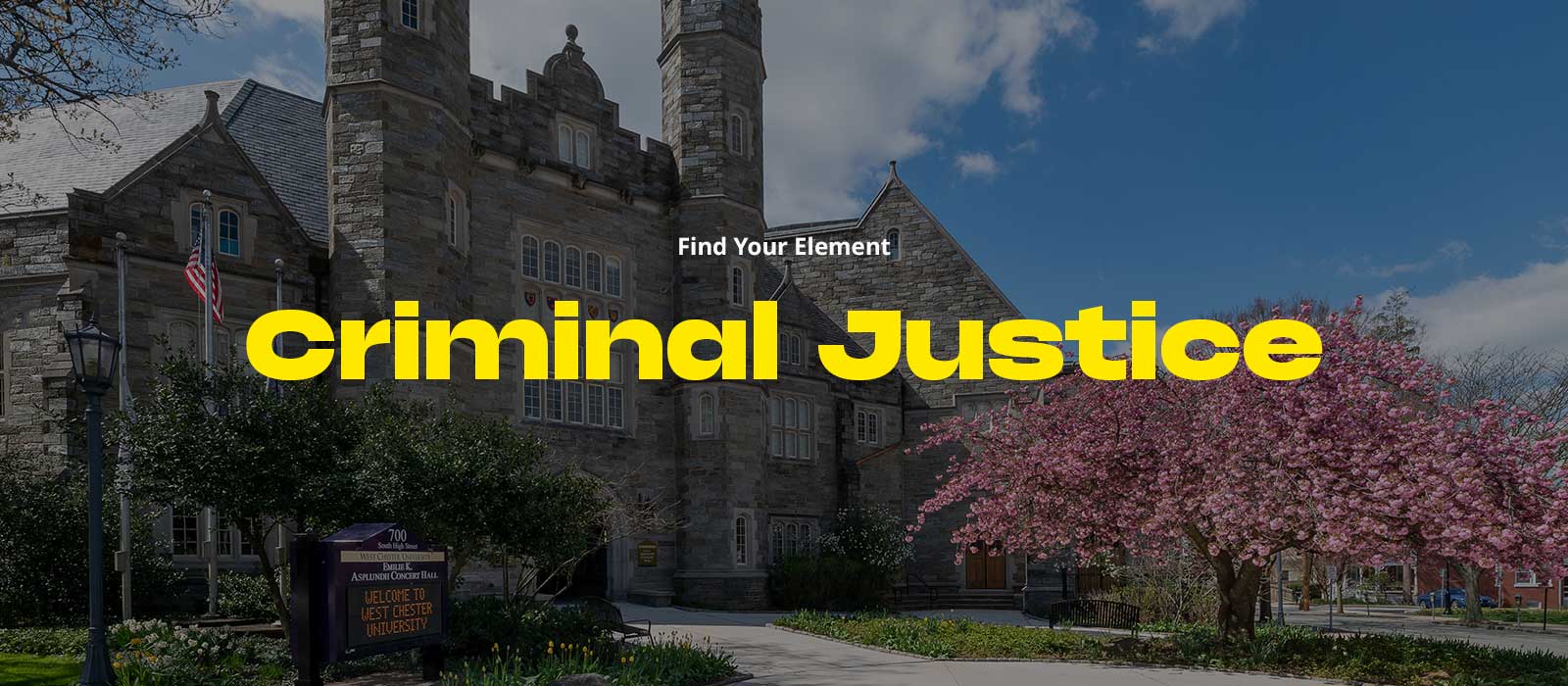 West Chester University's Department of Criminal Justice offers a Bachelor of Science in Criminal Justice, Minor in Criminal Justice, a Master of Science in Criminal Justice, and a Graduate Certificate in Foundations of Criminal Justice. We also offer a unique “Accelerated” program in which students can earn their bachelor’s and master’s degree in five years. One of our newest offerings is a graduate certificate in criminal justice.