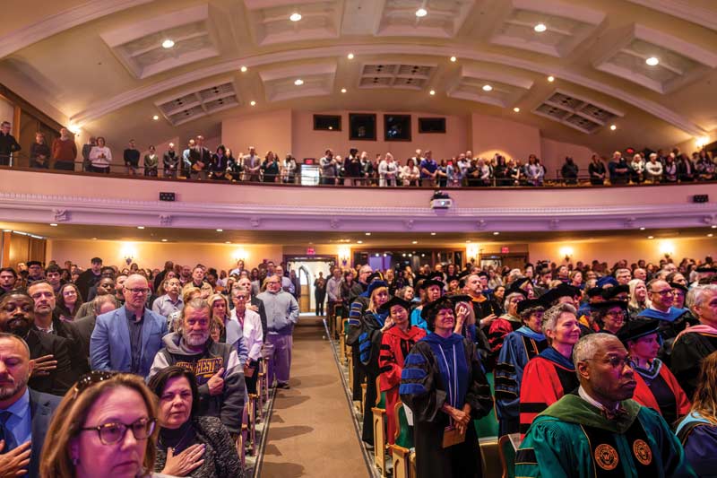The inauguration took place in Emilie K. Asplundh Concert Hall, which was filled to its 1,200-seat capacity for the event. Delegates in the platform party included Chair of the Board of the Governors for the Pennsylvania State System of Higher Education (PASSHE) Dr. Cynthia Shapira, PASSHE Chancellor Dr. Chris Fiorentino, presidents from the PASSHE schools and other universities, trustees from other institutions of higher education, WCU Council of Trustees members, elected officials, members of the WCU community, and alumni.