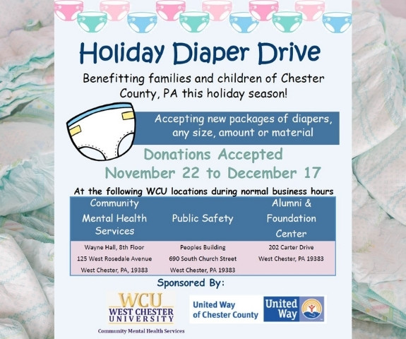 For more information about the Holiday Diaper Drive, visit wcupa.edu/CommunityMentalHealth or send an email to RB796569@wcupa.edu