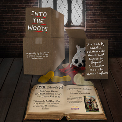 West Chester University’s Department of Theatre & Dance presents INTO THE WOODS from April 20 – 24, 2022 with music and lyrics by Stephen Sondheim and book by James Lapine. Directed by Associate Professor of Theatre Charlie DelMarcelle, INTO THE WOODS runs Wednesday – Friday, April 20 – 22, at 7:30 p.m., and Saturday and Sunday, April 23 and 24, at 2:00 p.m. in the MainStage Theatre, E.O. Bull Center for the Arts, 2 E. Rosedale Avenue, West Chester. General admission tickets are $12/$7 students at https://www.wcupatix.com/theatreanddance.