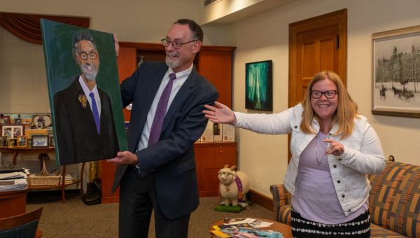 about his impending retirement in June — an original oil/acrylic portrait painted