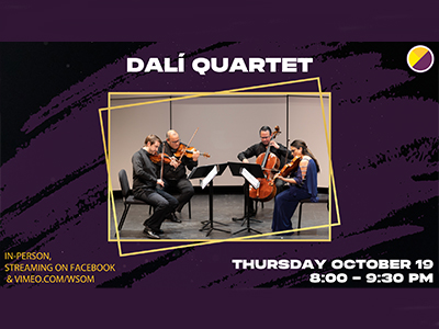 Wells School of Music’s Dalí Quartet is back for a Faculty Recital on Thursday, October 19, at 8:00 p.m. The concert takes place on West Chester University’s campus in the Philips Autograph Library, Philips Memorial Building, 700 S. High Street, West Chester. The concert is FREE and open to the public. It can also be livestreame. A full program for the evening can be found online.