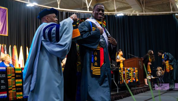 Some of the graduating WCU students at the Kente ceremony knew Jude Bourdeau ’25,