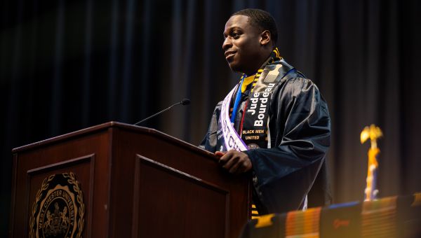 Bourdeau told the graduates that West Chester gave him “space to evolve from follower to founder. … [becoming] more than a student: I became a builder. …