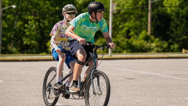Building connections is crucial for the one-on-one coaches and their athletes. This year, the one-on-one coaches tie-dyed white shirts with each athlete and experienced the thrill of a challenge ropes course, all creating and strengthening relationships right away based on trust and encouragement.