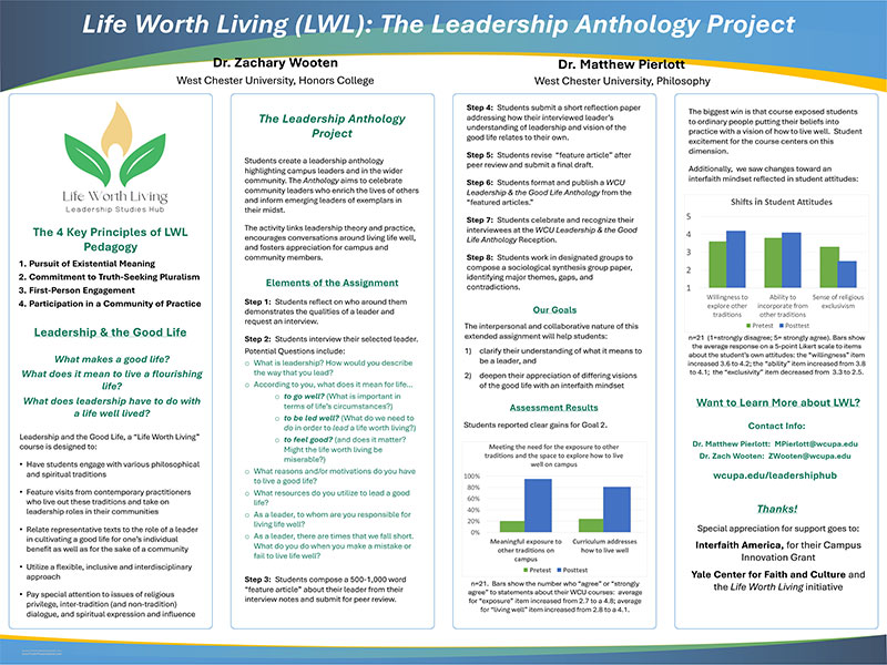 The Leadership and the Good Life Hub focuses on expanding the Life Worth Living (LWL) network to both Leadership Studies programs and those with a focus on leadership in the curriculum. The LWL network is an initiative of the Yale Center for Faith and Culture. Our Hub aims to connect educators around the world interested in innovative, meaningful and effective curricula on leadership. We work to achieve this through: new instructor outreach, continuing education for LWL instructors (integrating leadership studies and LWL curricula concepts), creating and sharing resources for leadership educators to employ LWL concepts and to develop LWL classes at their institutions, and convening LWL conferences and continuing education activities within leadership studies.