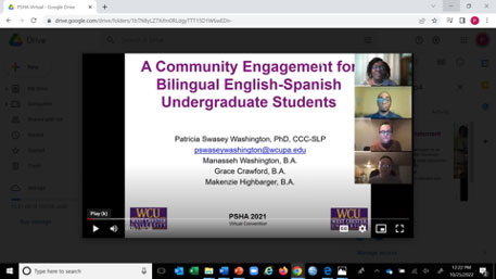 A fourth area of research is speech-language telepractice. After I received the Speech-Language Pathology Telepractice Training at Waldo County General Hospital, Bellfast, ME in the summer of 2018, my students and I piloted telepractice sessions with several patients. The patients were provided supplemental teletherapy sessions. We presented our results at the American Speech-Language-Hearing Association (ASHA) Convention (Swasey Washington et al., 2018, poster session). This project allowed us to investigate challenges and benefits of using teletherapy with patients. The plan had been to offer virtual speech-language services to both monolingual and bilingual patients in the West Chester University Speech and Hearing Clinic, in a gradually increasing fashion. However, when COVID-19 pandemic began and continued, our clinic and other community and university clinics were thrust into a largely virtual mode of service. We continue to investigate the best ways to use telepractice to serve our community, particularly those members who have challenges with traveling (e.g., distance, ambulation).