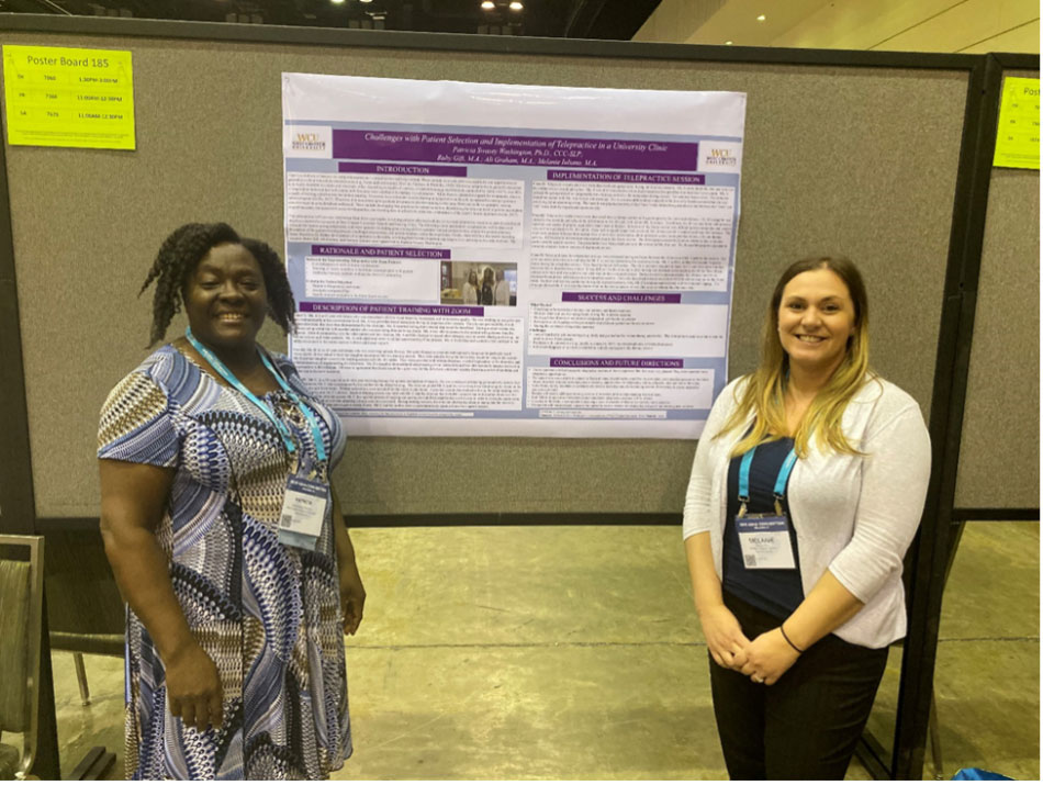 At the height of the pandemic, I examined the best ways to engage our patients virtually, resulting in two presentations on involving young children and their families in teletherapy (Swasey Washington, 2021, ASHA Convention, poster session; Swasey Washington, 2022, National Student Speech-Language-Hearing Convention, West Chester University, oral presentation). We continue to investigate telepractice options for patients from communities experiencing healthcare disparities, including those from culturally and linguistically diverse backgrounds. Also, I launched an international virtual telepractice event as part of a virtual study abroad to Costa Rica, which provided insight into how best to involve bilingual English-Spanish students in teletherapy with Spanish-speaking children and adults (Swasey Washington et al., 2021, ASHA Convention, poster session).