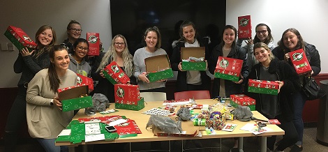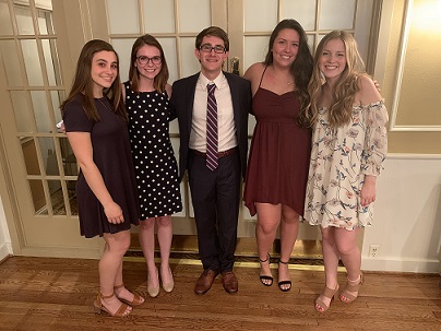 Front, from left to right: Paige Tamagnini (Secretary), Jessica Sawaged (Treasurer), Annie Braga (Historian). Back, from left to right: Juliana Foley (Event Coordinator), Jessica Sturm (President), Caele Clark (Event Coordinator).