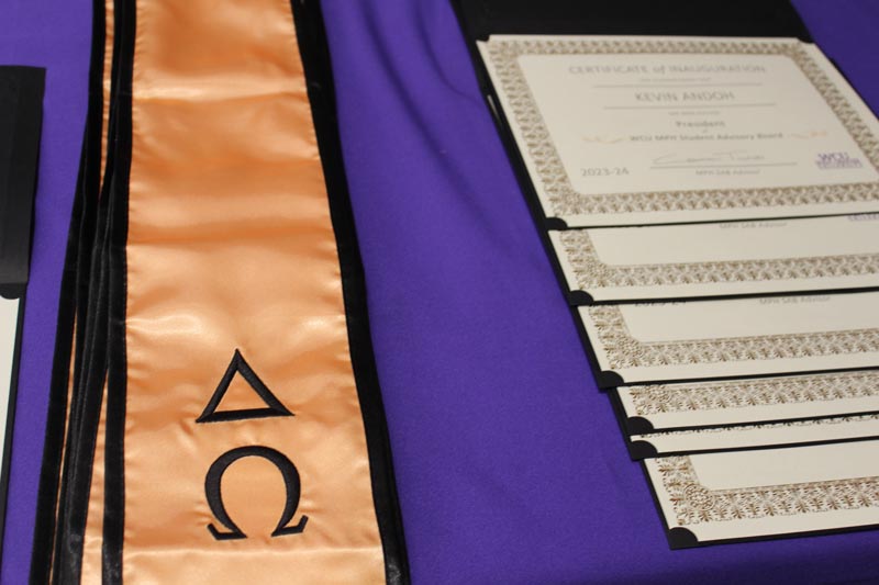 The Delta Omega Honorary Society in Public Health was founded in 1924 at Johns Hopkins University within the School of Hygiene and Public Health. The West Chester University Beta Xi Chapter was founded in 2006 by Dr. Stacie Metz. The purpose of Delta Omega is to promote the graduate study of public health, and to recognize outstanding achievement in the new field.