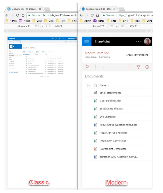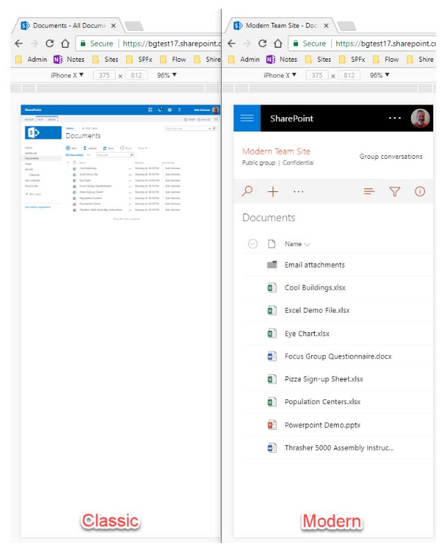 Modern SharePoint is a whole new user experience. It is designed to work on mobile devices and addresses usability issues. The site automatically adapts to a narrow screen on a tablet or a phone, keeping the page readable without sideways scrolling on any screen size. No customization or advanced configuration is needed to create attractive sites.