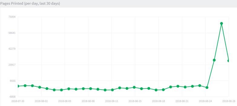 On the first day of the semester, over 68,000 sheets were printed, last year, it was over 69,000. Prior to changing the default to duplex, the number of sheets printed would be over 100,000 pages on the first day of classes!