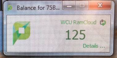 A PaperCut client (rebranded RamPrint) is installed on all WCU owned student use computers so students can view their current balance each time they logon and print directly to the RamPrint ‘printer’. There are 1,762 student use computers on campus running PaperCut and currently students are limited to 125 pages per week. Each printer (that has the capability) is configured to print duplex by default to help save on paper and we only deploy black and white printers (we have three color printers).