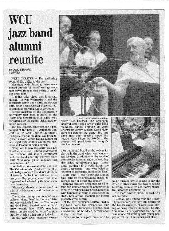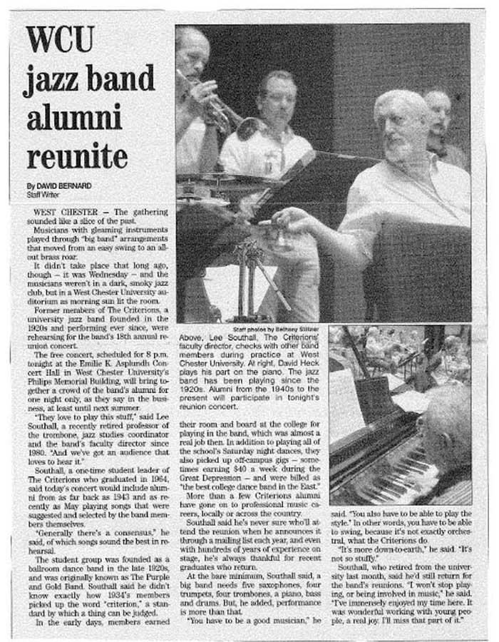 The long history of the Criterions boasts a strong a devoted community of alumni. Started by Lee Southall and now lead by Dave DiValentino, the Criterions Alumni band meet every summer for a concert. This page is dedicated to all things alumni: feature spotlights, lists of alumni who have gone on to performing careers, photos and more. If you’re an alum and would like something to be included, please email: jragonese@wcupa.edu