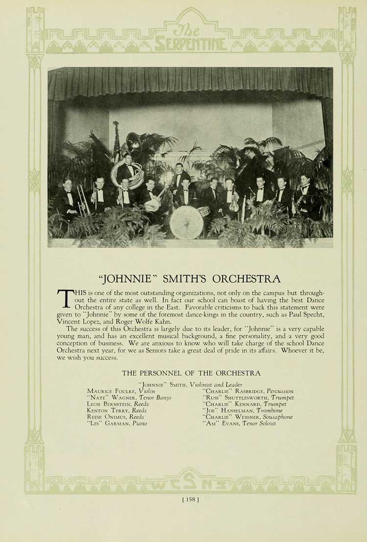 Johnnie Smith’s Orchestra photographed for the yearbook. Probable previous inspiration for The Criterions.