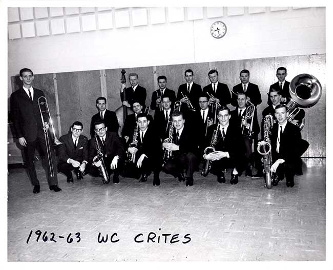 "My time as the director of the Criterions totally prepared me for my life’s work in music. I arrived on campus in the Fall, 1959 and was fortunate enough to join the Criterions at that time. The student director graduated in January 1960, and I was selected as the new student director. The band was always directed by students until much later. The 3 ½ years with the Criterions was an amazing time for me. I wrote a lot of original music for the band, some good, some not so good. I also transcribed a lot of music from records for us to play. It was during this time that the band was gradually changing from a dance band to a jazz ensemble. However, we continued to perform at all 29 (I think) on-campus dances/gigs on a contract with the student government and the college. We earned $90 a semester. What an education that was! Not only was I getting a top-notch education from the outstanding music faculty, but an education in leading a band, preparing for all those gigs and concerts, and dealing with band personnel. Without the band serving as my “lab band,” I know I never could have been successful as a composer/arranger. I think of those guys and that time very often. I will always be grateful for that experience and my time at West Chester." - Bob Curnow