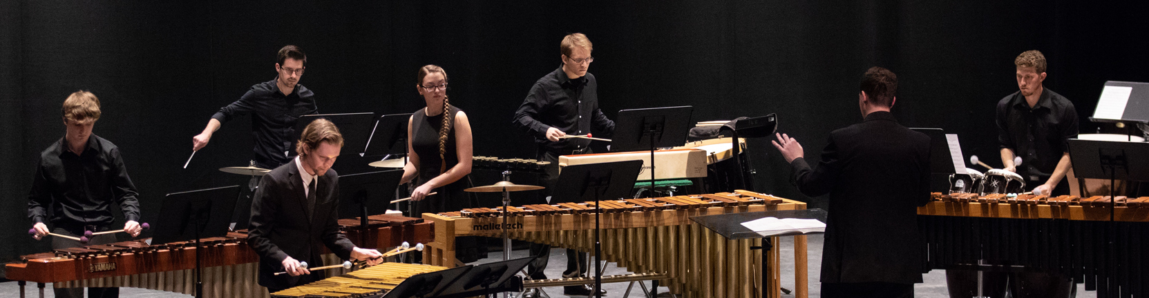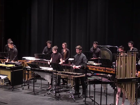 West Chester University percussion majors benefit from a well-rounded percussive education which is focused on career preparation. WCU percussion majors perform in a variety of ensembles, including Percussion Ensemble, Steel Band, Wind Ensemble, Symphony Orchestra, Wind Symphony, Concert Band, Marching Band, Latin Jazz Ensemble, two big bands, and numerous jazz combos. All ensembles perform regularly on campus and some ensembles travel for domestic and international performances. WCU percussion majors pursue degrees in music performance, music education, music composition, and music elective studies in an outside field.