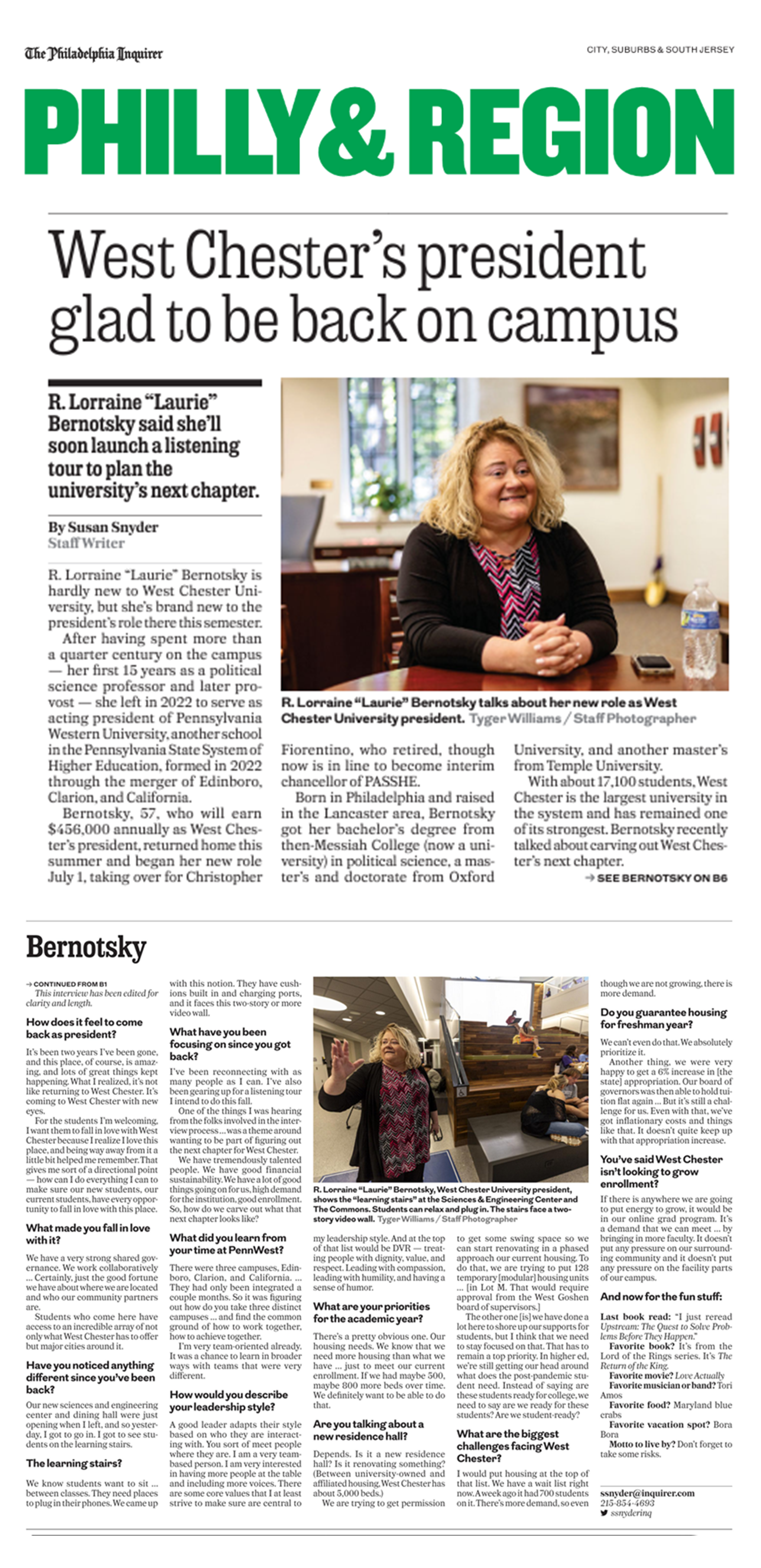 Philadelphia Inquirer: Dr. Bernotsky’s Bold Vision for WCU in the Spotlight