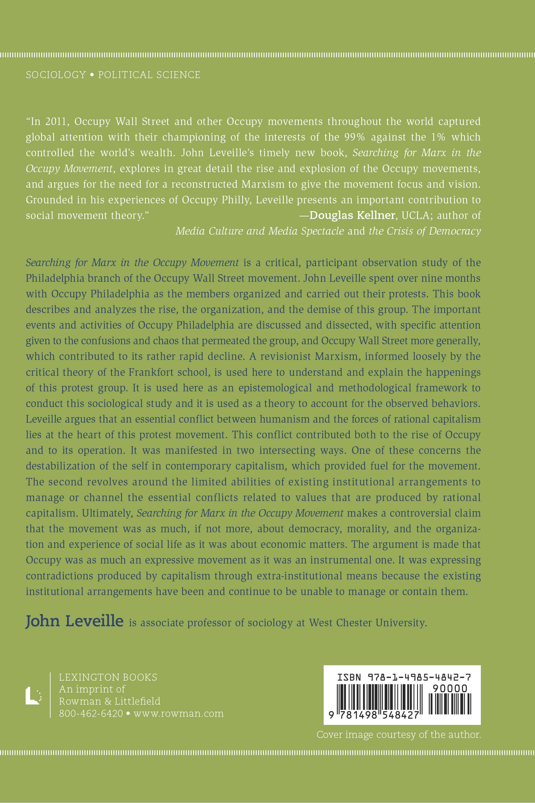 John Leveille is an associate professor of sociology at West Chester University. Dr. Leveille's areas of specialization include sociological theory, social movements, historical sociology, the historical sociology of mental illness, and morality and ethics in sociology. He has recently published a second edition of a textbook on sociological theory, which is available now either as an ebook or a paperback on Amazon.com. Dr. Leveille has also published a book titled Searching for Marx in the Occupy Movement (Lexington Books/Rowman and Littlefield imprint.) The book is based upon his critical participant observation study of a local branch of the Occupy Wall Street movement. It draws upon the theories of the Frankfurt School, and specifically on the ideas of Theodor Adorno, to make sociological sense out of the events of this movement. The book is available through the publisher’s website and Amazon.