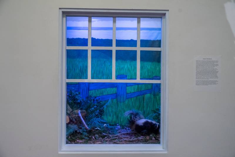 Except for the Eastern grey squirrel climbing to its tree nest, the wildlife in this habitat diorama are all nocturnal animals. As humans, we don’t have to let darkness overtake natural environments and wildlife forever. The sun can rise again if we make conscious choices towards sustainability, and work to find balance in our own backyards.