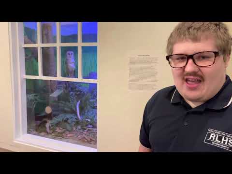 Humans have continued to modify and encroach upon natural environments, as illustrated in this habitat diorama of a historic Chester County backyard bordering a forest. Chester County, especially the land surrounding West Chester, was predominantly rural until suburban sprawl significantly altered it in the beginning of the 21st century, and continues to increase today. It has significantly transformed the land, and its flora and fauna. For example, broad-winged hawks (Buteo platypterus) have been forced to adapt to human environments and local populations have declined in some areas due to forest fragmentation. But some wildlife has been able to take advantage of human activity. Striped skunks (Mephitis mephitis) are omnivorous scavengers that have fared well. They often get into humans’ trash as their natural habitats are developed and urbanized. Eastern grey squirrels (Sciurus carolinensis) can live in suburban and urban environments easily, utilizing backyard bird feeders as a new food source. Barn owls (Tyto alba) have also found success by nesting in human structures. There are still threats to barn owls despite their adaptations, however. Chemical rodent poison can kill the barn owls, who otherwise serves as a natural pest control that primarily hunt and consume rodents.